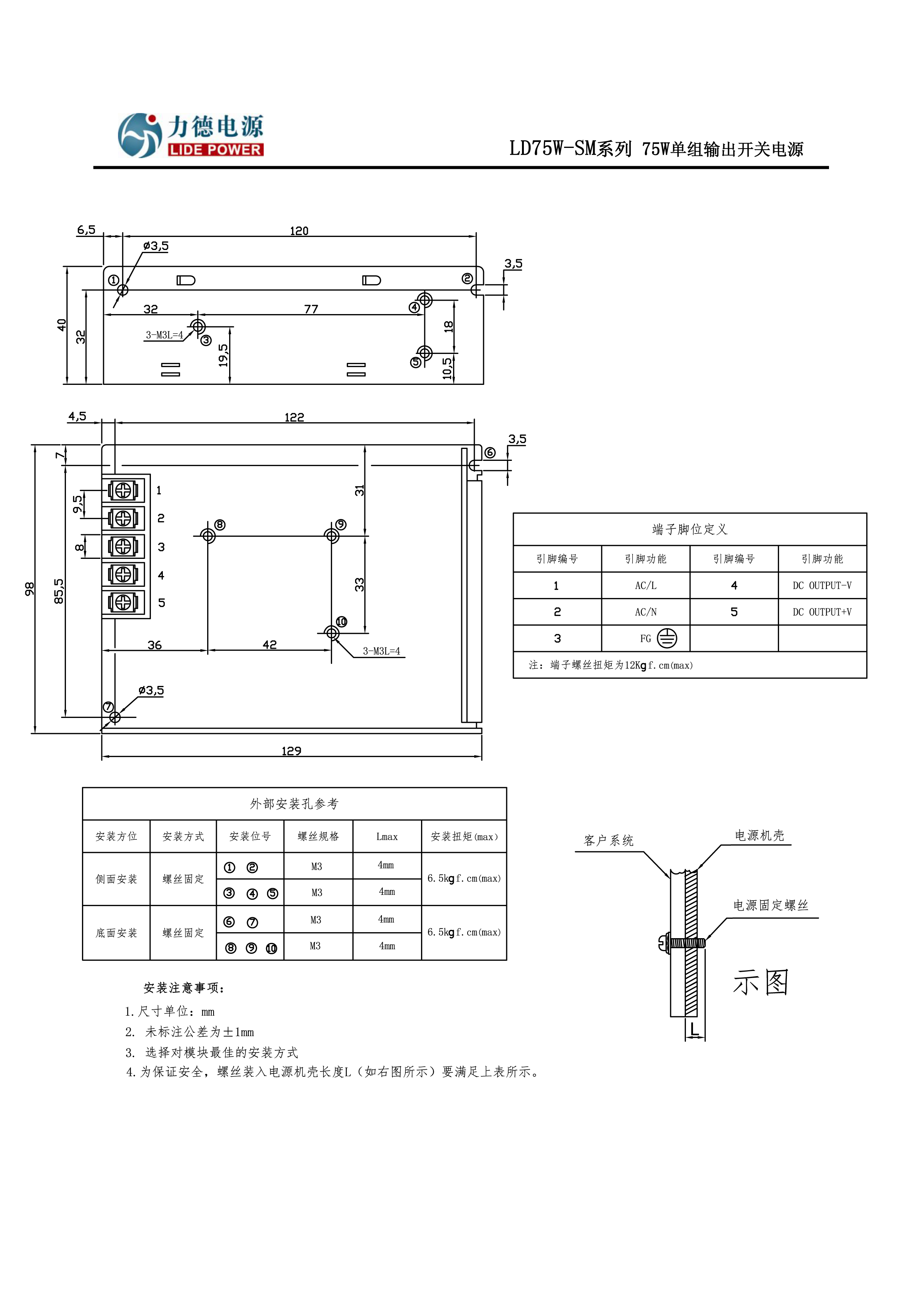 產(chǎn)品規(guī)格書下載力德75W單組輸出開關(guān)電源