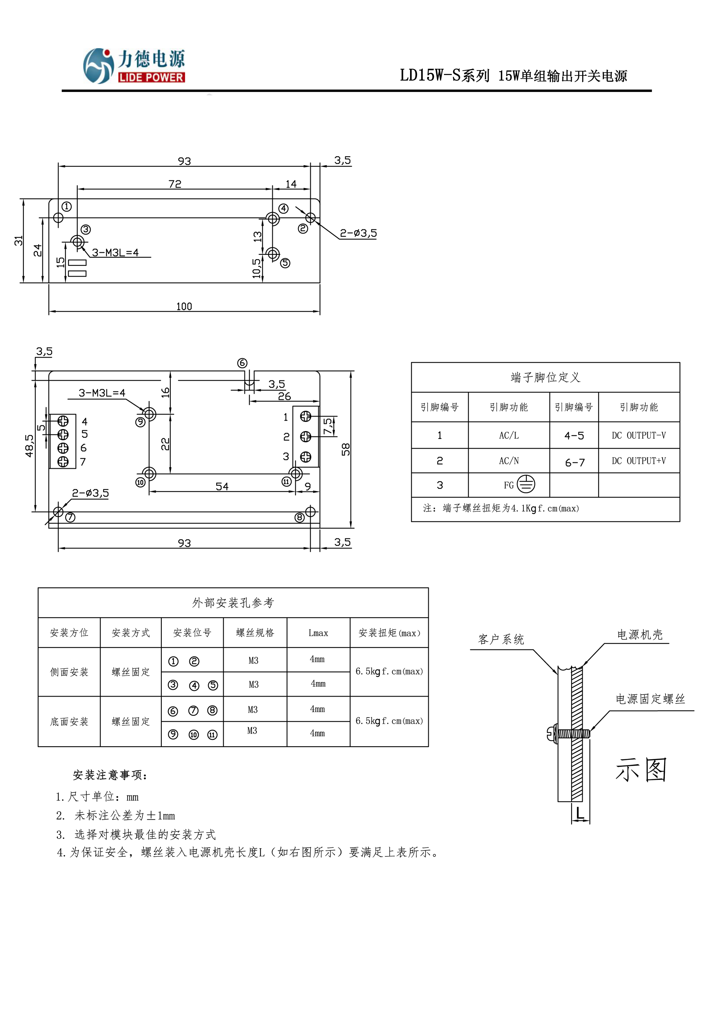 產(chǎn)品規(guī)格書(shū)下載力德15W單組輸出開(kāi)關(guān)電源