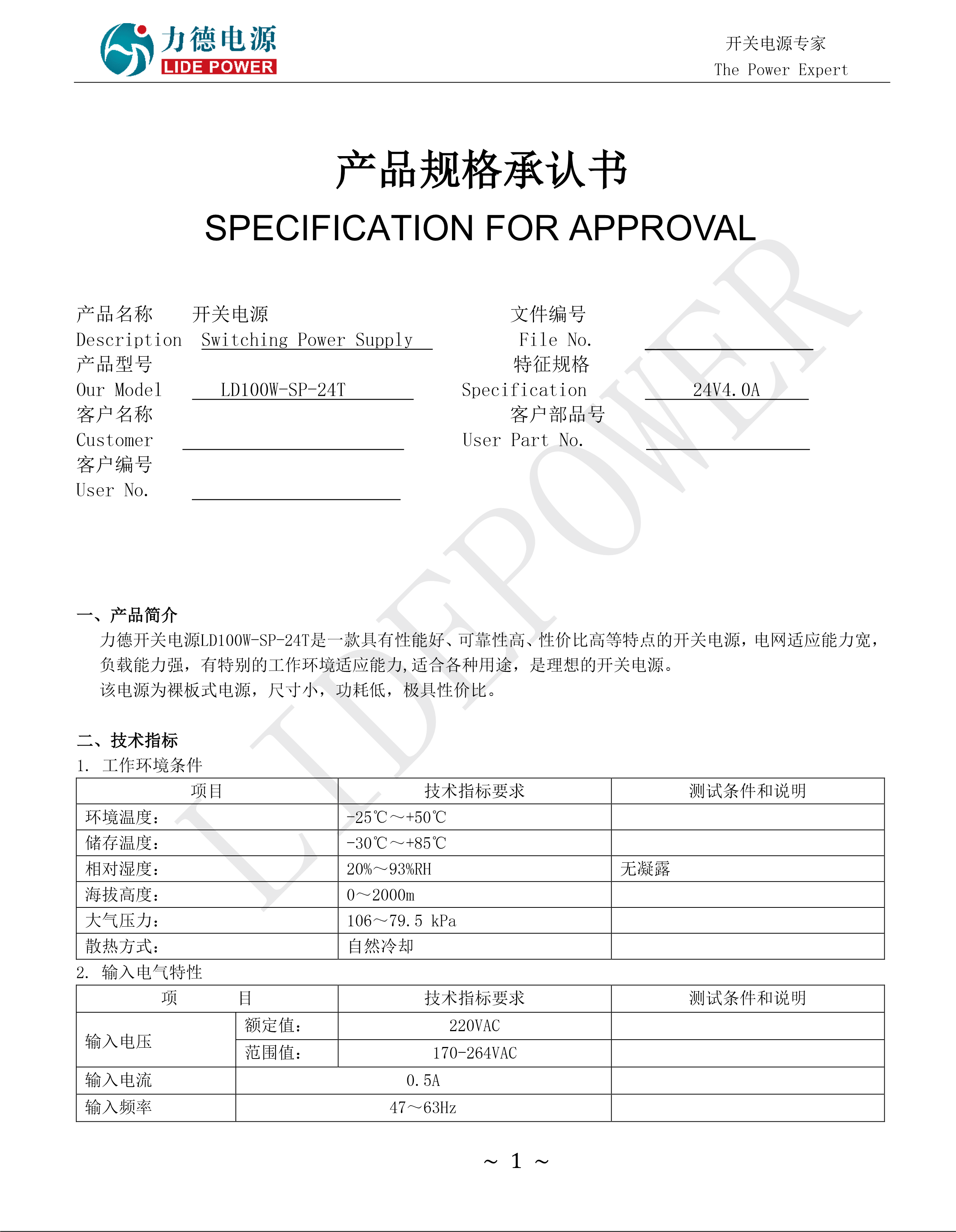 產(chǎn)品型號(hào):LD100W-SP-24T